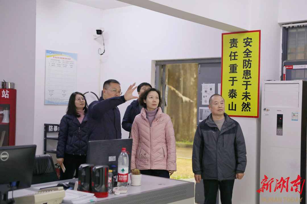 1月18日下午,湖南财政经济学院党委书记杨兰英、副校长刘茂盛带队深入主校区学生宿舍、实训楼、体育馆、图书馆、食堂、教学楼、金枫楼、消防控制室等重点部位开展安全检查工作。