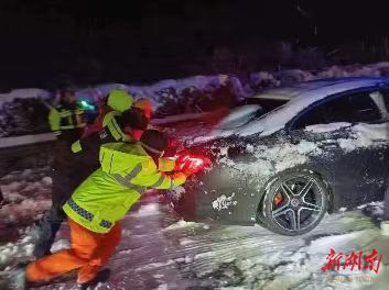 1月22日凌晨,杭瑞高速湘西州段暴雪来袭,湖南高速集团湘西分公司青年突击队彻夜保畅,帮助滞留司乘推车。