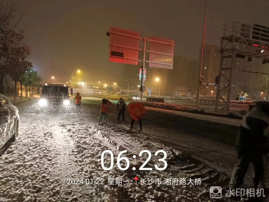 湘西辖区大雪,部分路面积雪,部分桥梁路肩结冰;娄底辖区大雪,部分路肩积雪;益阳辖区中到大雪,部分路肩积雪;邵阳辖区中到大雪,部分路肩积雪;长沙辖区中雪,部分路肩积雪,部分桥梁路肩结冰;衡阳辖区中雪,部分路肩积雪;湘潭辖区中雪,部分路肩积雪;岳阳辖区小到中雪,部分路肩积雪;怀化辖区小到中雪,部分路面积雪,部分路肩结冰;常德辖区小雪,部分路肩积雪;株洲辖区部分路段中到大雪,部分路段路面积雪;郴州辖区部分路段中到大雪,部分路段少量积雪,部分桥梁路肩结冰;张家界辖区部分路段中小雪,部分路面积雪,部分桥面结冰;永州辖区部分路段雨夹雪,部分路肩积雪。1月21日晚间,长沙机场迎来2024年第一场降雪,为切实保障进出港航班安全起降,22日凌晨4:38,长沙机场启动三级除冰雪响应,第一时间组织各相关单位开展除冰雪工作。今晨6:00,第一架到达航班(内罗毕-长沙)已平安落地,目前长沙机场处于正常运行状态。