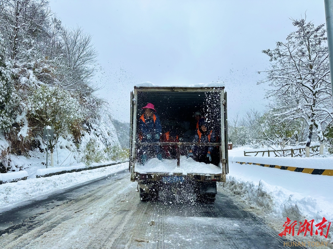 公路养护人员撒布融雪剂。 花垣县公路建设养护中心 供图
