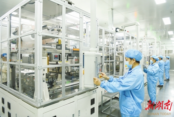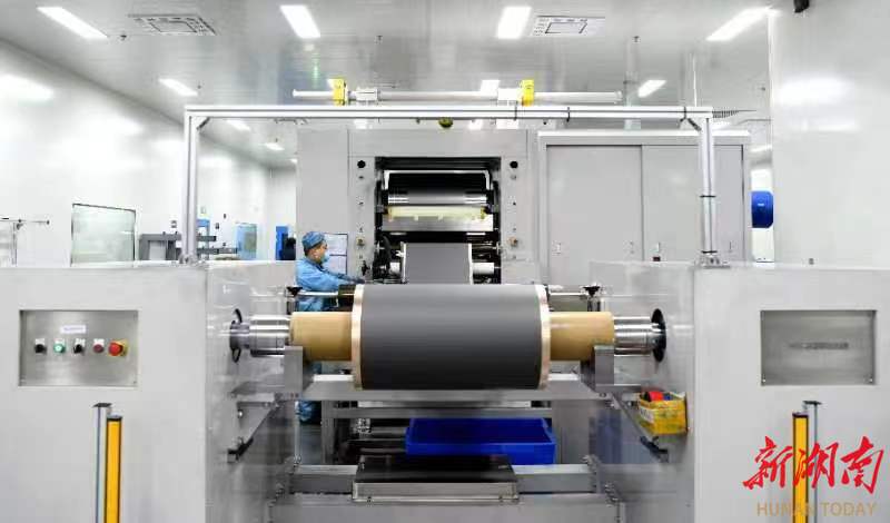 1月15日,常德经济技术开发区常德昆宇新能源科技有限公司,技术人员在操作全自动智能化磷酸铁锂电芯生产线。罗勇 昆宇 摄影报道