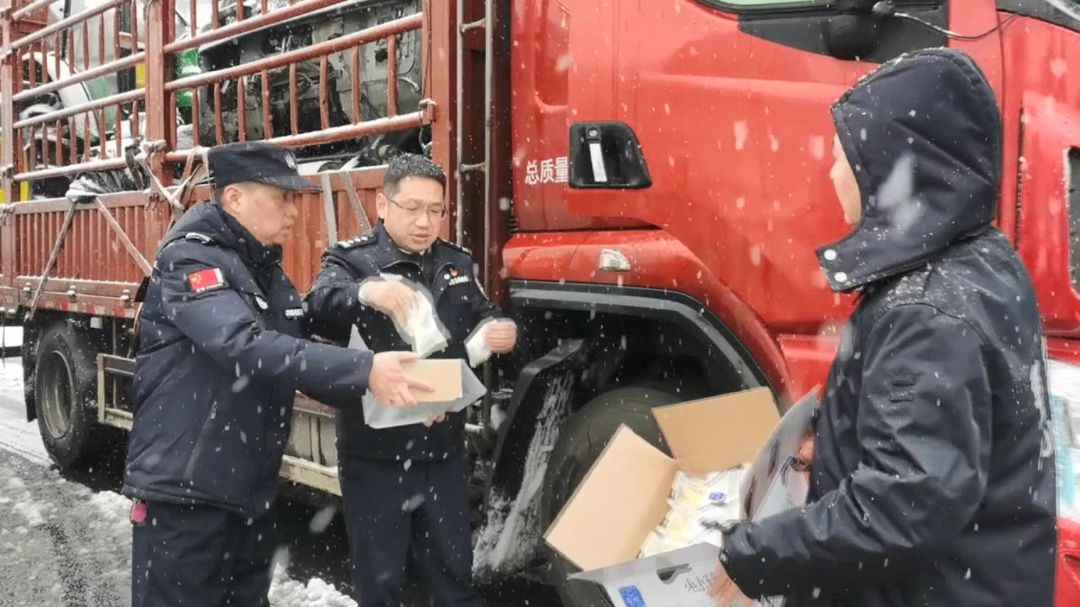 滞留司乘人员刘廷胜表示:“没想到昨天晚上会突然下那么大的雪,一下子猝不及防,刚好这边交警部门发了一点物资,为我们这些出行的人,添了不少温暖。这种天气他们还在为我们劳累奔波,确实不容易。”