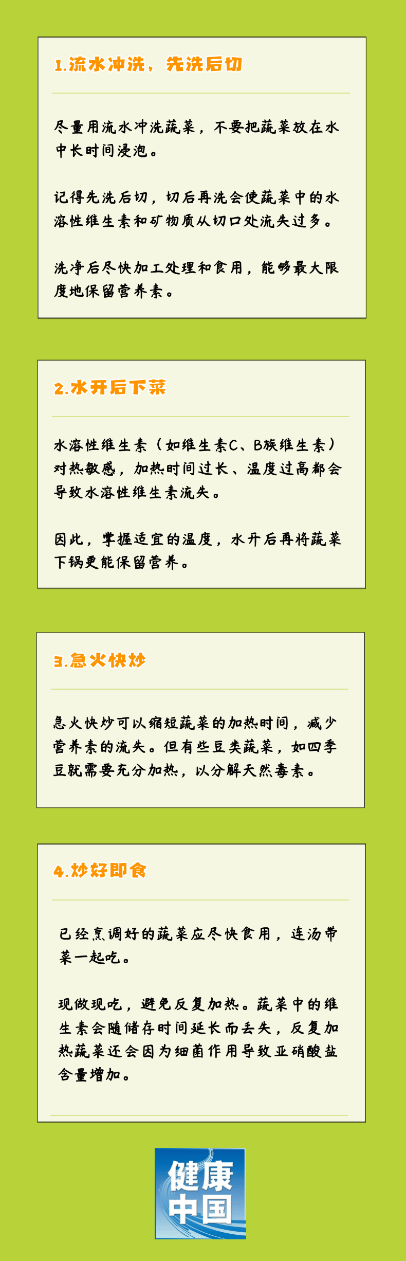 加热烹调除了改变蔬菜的口感和形状外,也会造成维生素的破坏,在一定程度上降低蔬菜的营养价值。要根据蔬菜的特性选择适宜的加工处理和烹调方法,尽可能地保留蔬菜中的营养价值。