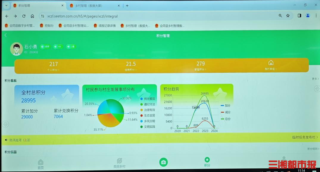 堡子镇五村联创积分智理网页页面。高煜棋 摄