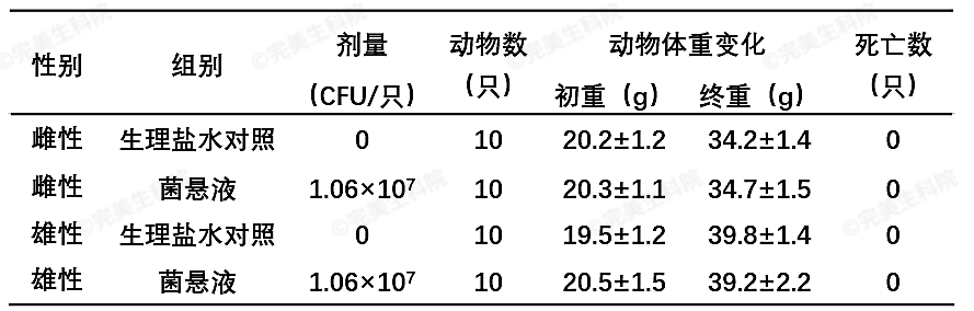 研究人员参考《保健食品原料用菌种安全性检验与评价技术指导原则(2020年版)》中的“保健食品原料用细菌致病性检验方法”对其开展小鼠细菌致病性研究。