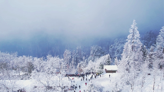 张家界武陵源今冬的首场雪,让张家界国家森林公园(武陵源景区)成了“琉璃世界”,群峰洁白冷峻,雾雪平添神秘,来自全国各地的游客纷至沓来,共赴这场视觉盛宴。