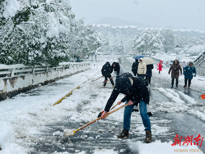 保卫部、后勤处第一时间启动大雪冰冻天气应急预案,加强全校安全巡逻,重点排查校舍、围墙、楼梯栏杆等区域安全隐患;在校园口、车库门口等区域开辟行人便道,并在主干道路撒盐、铺设麻袋,确保师生出行安全;安排专人排查电路线路,确保水电气的正常供应。组织部向全校党员干部发出倡议,号召各级领导干部、党员同志积极投入冰雪清扫工作,不到一个小时之内,先后有党政办、湖南经地科技发展有限公司、学生工作部、组织部、宣传部、资产管理处、就业创业中心、团委、教学质量监控与评估中心、会计学院、信息技术与管理学院、人文与艺术学院、数学与统计学院、体育学院等单位的30余名党员干部赶赴学校,与坚守校园安全与环境岗位的保卫处、后勤处同志们一道,对体育馆和教职工九栋旁的两条长坡道积雪进行清理,保障了校园内主干道的车辆和人员通行安全。