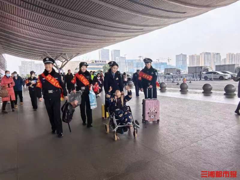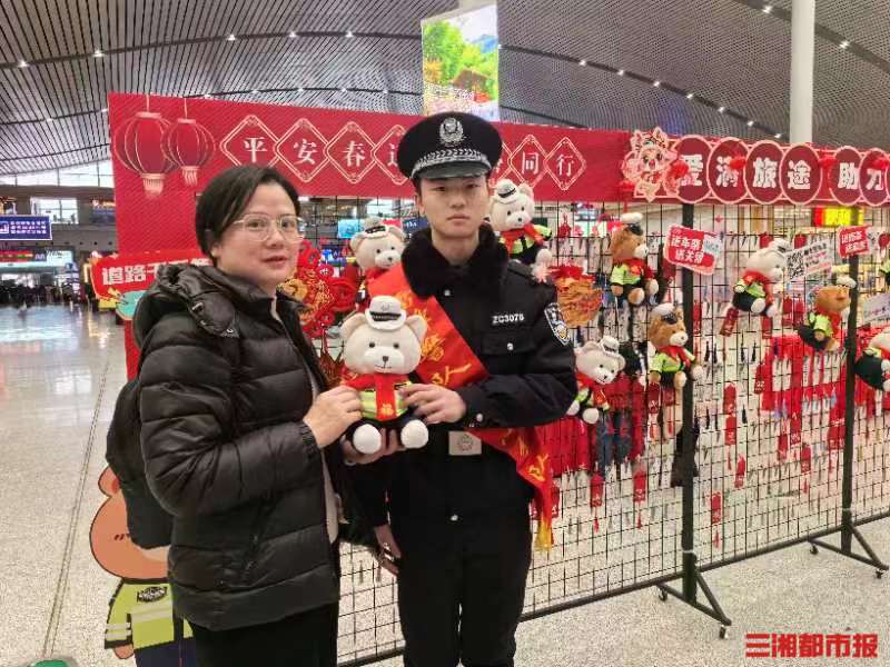 三湘都市报·新湖南客户端1月26日讯(全媒体记者 杨洁规 通讯员 张威 丁柔方)1月26日,为期40天的2024年春运正式启动,长沙铁路公安处长沙南站派出所联合长沙市公安局交警支队、长沙南站等多家单位,在长沙南站高架候车层开展“温暖回家路 铁警伴你行”安全宣传暨爱民服务实践活动。