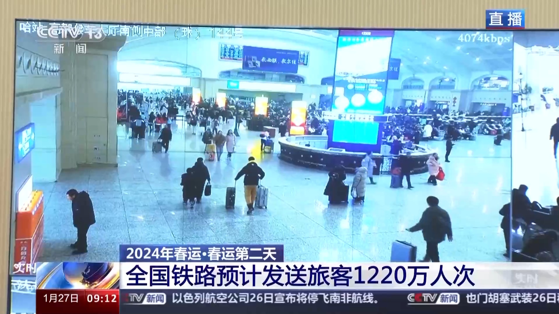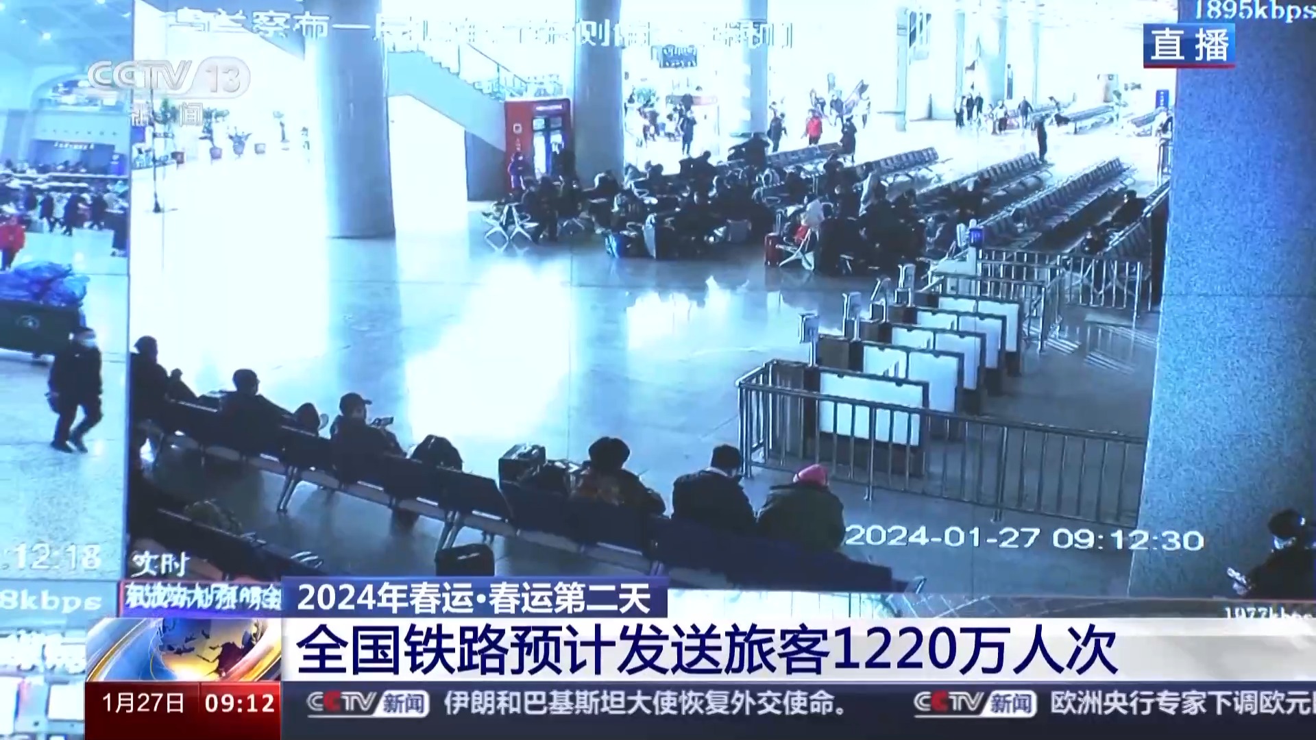 总台央视记者 杨丽君:今天是春运第二天,来自国铁集团的最新消息:春运第一天铁路发送旅客1106.3万人次,预计今天发送旅客1220万人次。
