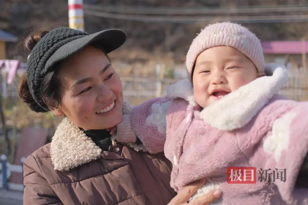 傍晚,巴木玉布木抱着不满一岁的老五在阳光下散步,孩子们总是喜欢围着妈妈转,一片欢声笑语。婴孩帽子上绣着“岁岁平安”,这也是巴木玉布木一家的心愿。