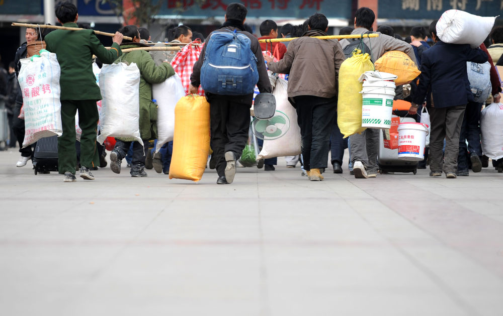 2009年1月8日,一批准备返乡过年的务工人员在长沙火车站。 新华社记者李尕摄