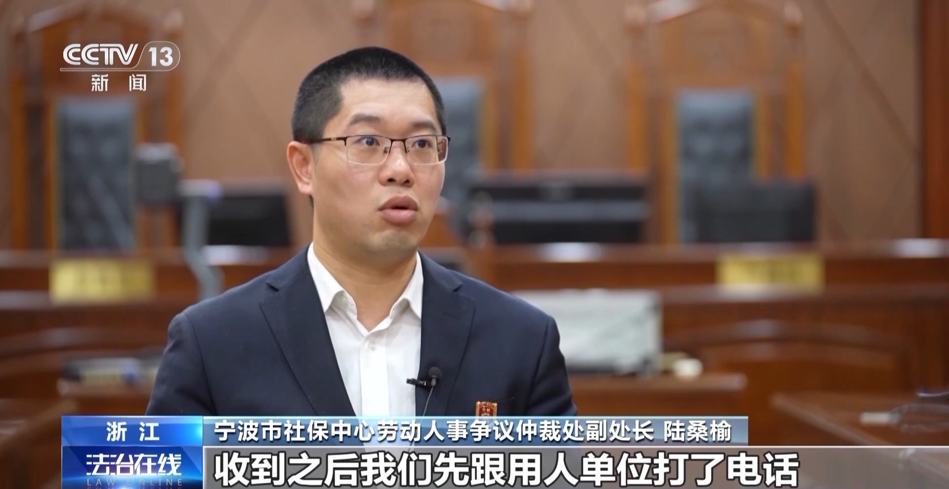 宁波市社保中心劳动人事争议仲裁处副处长 陆桑榆:案件受理之后,我们先跟用人单位打了电话。跟用人单位核实之后,那我们是发现用人单位的陈述就是,劳动者的仲裁的主体可能是有误的。