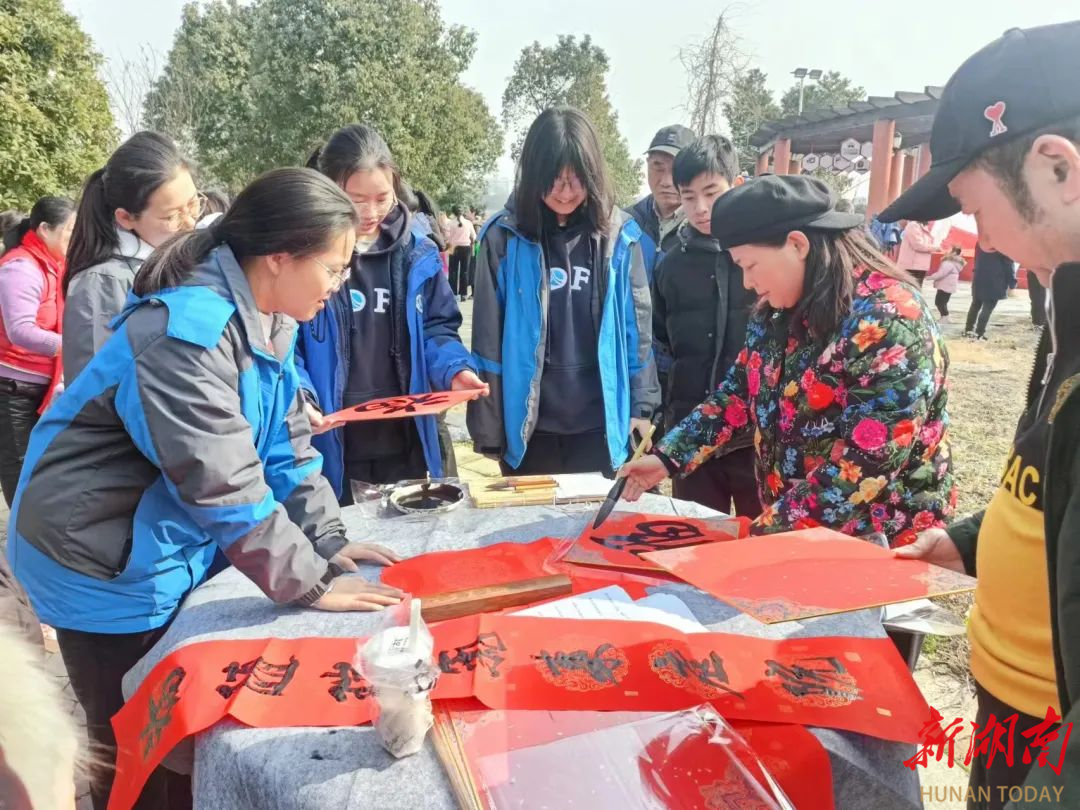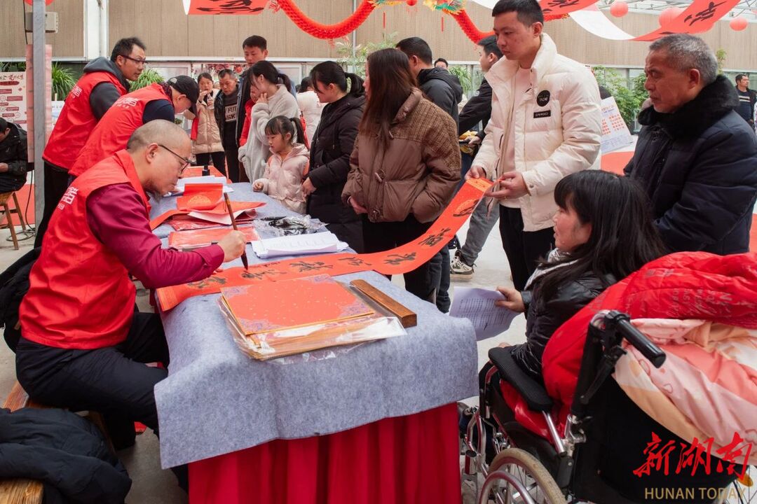 值得一提的是,长沙市群众艺术馆书法专干曾祥頔,既是活动的组织者又是参与者,每场活动不仅最先到达现场,而且十分热心地为当地群众写春联、送福字,深得当地人民喜爱。