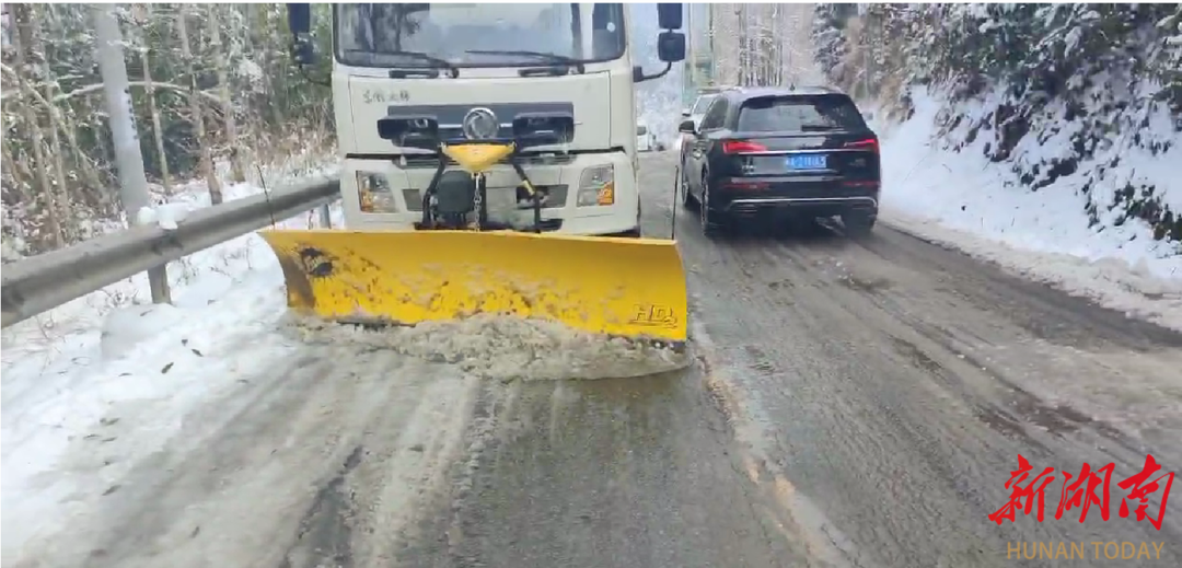 下午开始,古丈县公路建设养护中心以“雪”为令,迅速调集工作人员,在该路段大面积抛撒融雪剂,开展除雪防滑作业,加密道路巡查次数并设置安全警示标志,不断为沿线行驶车辆“保驾护航”;古丈县公路建设养护中心干线股赵治华告诉记者,目前该中心已组织40余人,2台撒布机、4台车辆、1台铲雪车、200块安全警示标志牌,采用人工加机械方式,对G352线高海拔地区、易结冰冻路段进行持续作业。