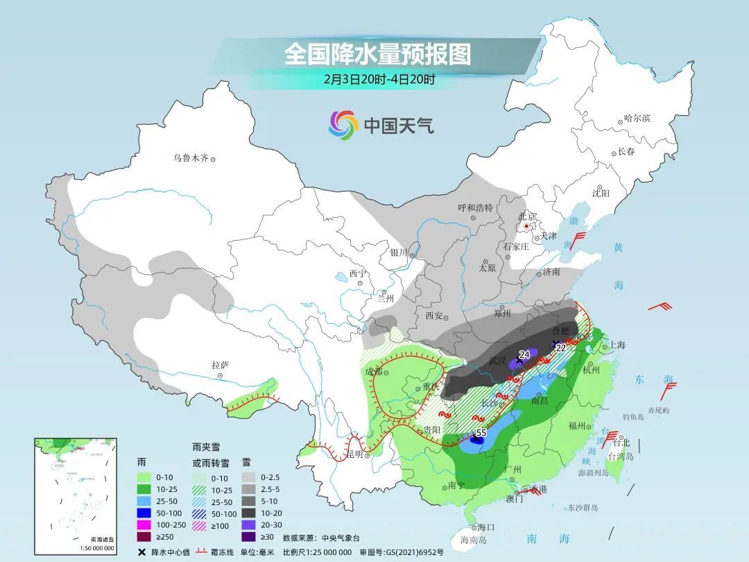 今天晚上到明天中午,湖北、安徽等地还有强降雪。预计2月3日20时至4日20时,河南南部、湖北大部、安徽中北部、江苏西部、湖南北部、重庆东部、贵州东北部等地的部分地区有大到暴雪,其中,湖北东北部、安徽中部等地的部分地区有大暴雪(20~24毫米)。上述地区新增积雪深度3~10厘米,局地可达20厘米左右。