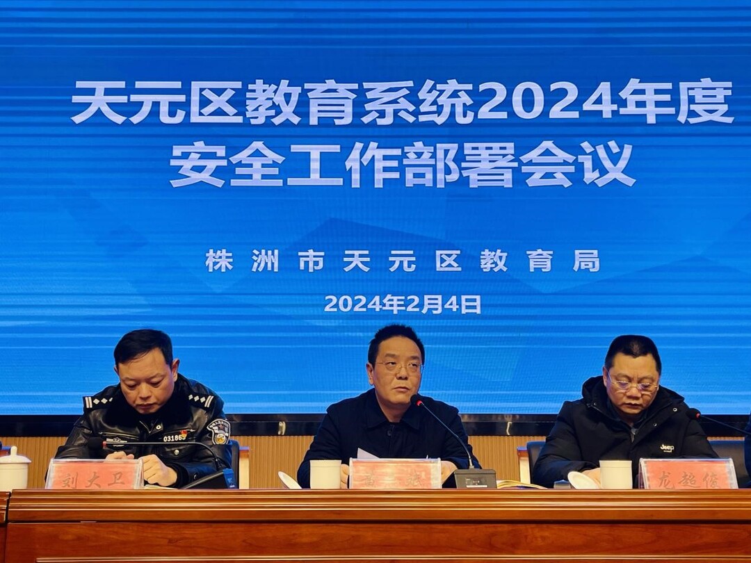 2月4日下午,天元区教育局组织召开教育系统2024年安全工作部署会,天元区人民政府副区长黄志斌出席会议,区教育局党委书记、局长龙超俊主持会议。全区各中小学校校长、幼儿园园长及校外培训机构负责人200余人参加会议。