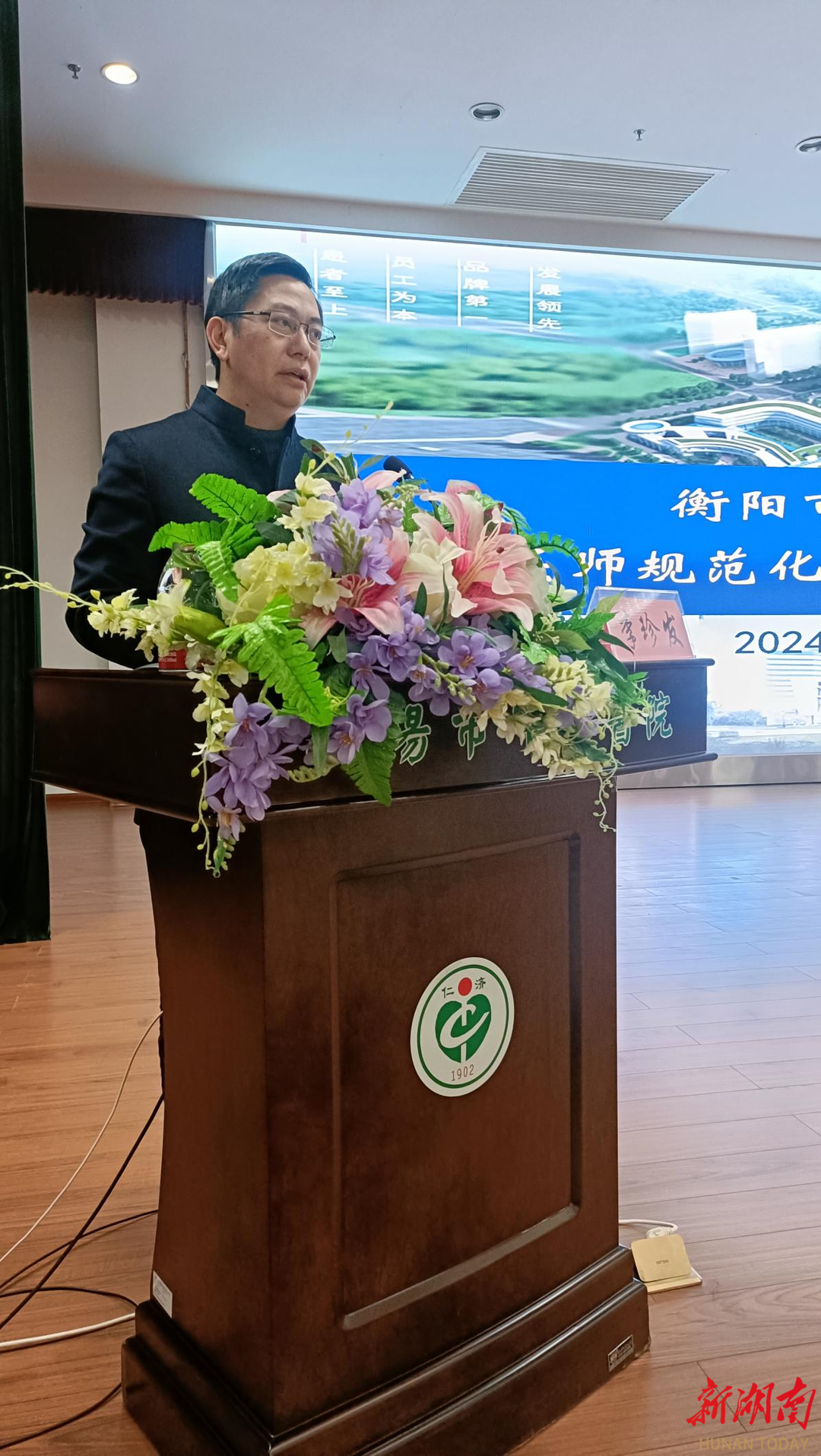 大众卫生报·新湖南客户端2月4日讯(通讯员 殷君发)2月3日恰逢南方小年,衡阳市中心医院举办住院医师规范化培训师资能力提高班。中南大学湘雅医院毕业后医学教育办公室主任付斌一行7名专家顶着严寒,赴衡阳市中心医院开展讲课和教学查房工作。衡阳市中心医院院长尹军发表致辞,副院长刘小平主持第一环节学术讲座,副院长李珍发主持开幕式。衡阳市中心医院各科室主任、住培基地主任、教学秘书、教学骨干参加培训。