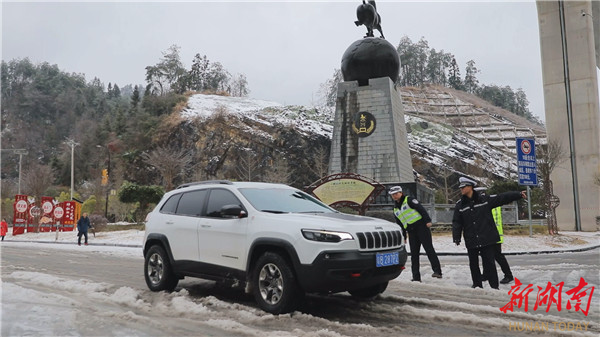 新湖南客户端2月4日讯(通讯员 肖昕翔 龙雯)2月3日晚,湘西土家族苗族自治州凤凰县迎来今年的第二场降雪,湿滑的路面给行车带来较大的交通安全隐患。凤凰公安交警、高铁站铁警全员出动,全力护安全保畅通。