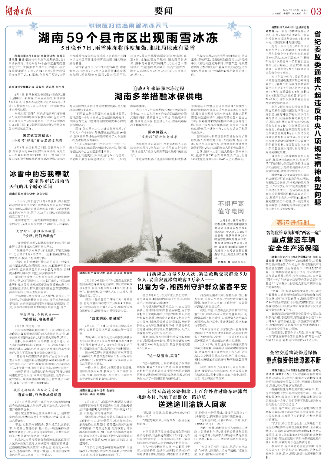 湘西州各级各部门闻令而动、冲锋在前,应对低温雨雪冰冻天气。截至4日中午,全州共出动应急力量5万人次,帮助受灾群众温暖过冬,滞留旅客均得到妥善安置。
