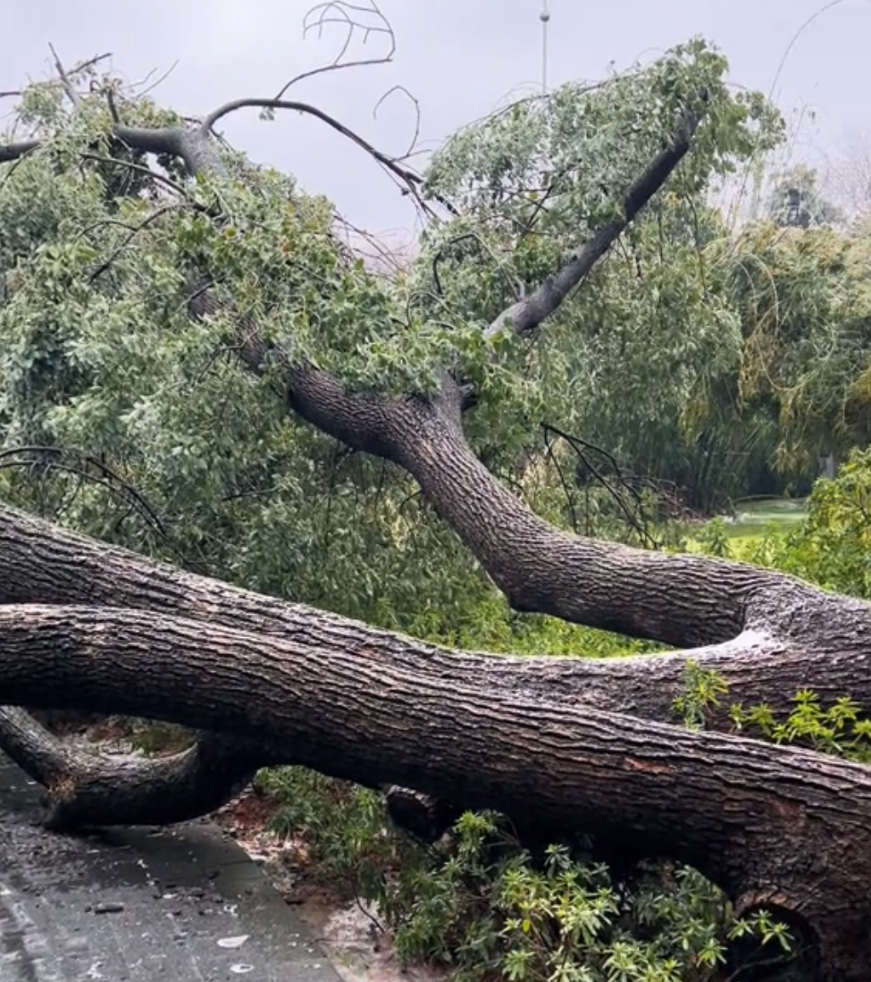▽有的地区甚至连粗壮的老樟树都不能幸免,轰然倒塌。