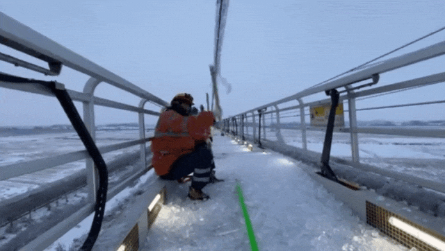 为了保障工人们的安全,接触网必须切断电力,因此这段线路会暂时彻底无法通行。而除冰的方式,是工人们固定在低速行驶的列车顶部,用力一锤一锤地,就这么用人力敲掉可能长达数公里的冰。因此,这项工作快不了,也快不得。