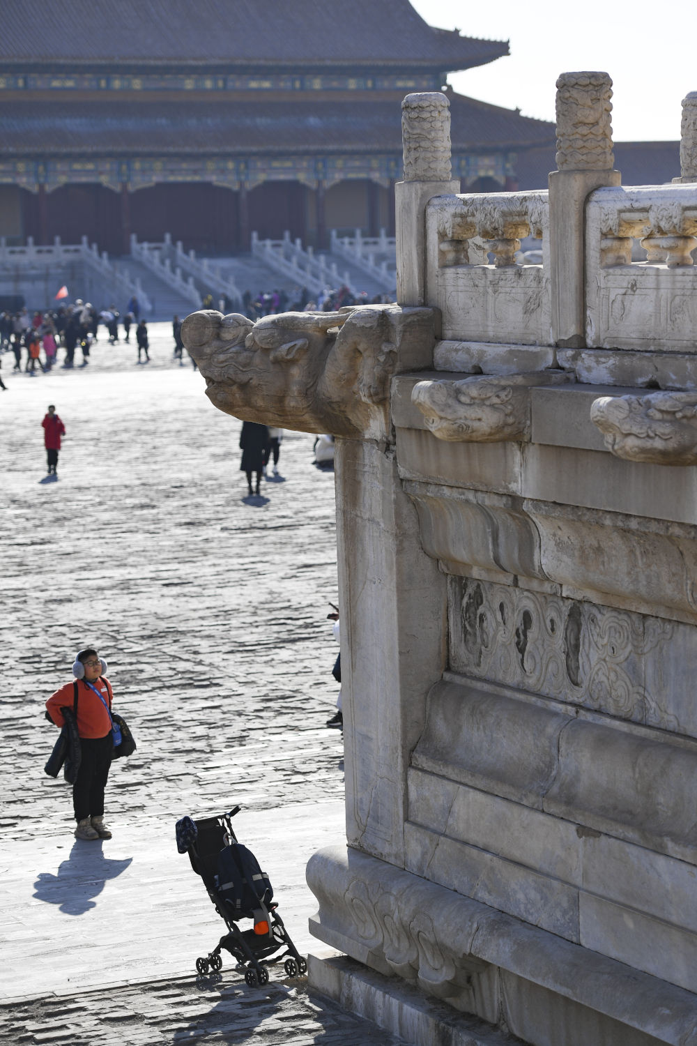 ↑这是故宫皇极殿前雕有龙的御路石(1月28日摄)。
