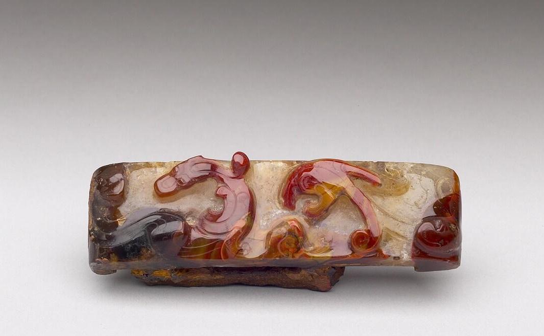 玛瑙龙纹剑璏西汉中晚期,玉石器台北故宫博物院藏