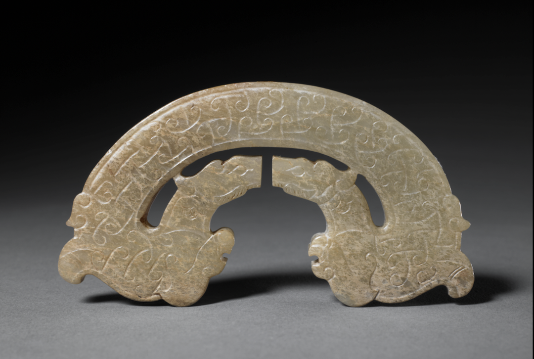 玉镂空人龙纹璜西周晚期玉石器台北故宫博物院藏