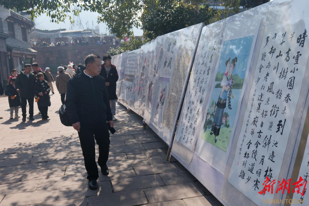 同时,在文化广场、在朝阳宫集中展出100余幅书画作品,内容丰富,形式多样、雅俗共赏,生动地展示了凤凰秀美的山水风光、风土人情,呈上了一场翰墨飘香、溢彩流光的视觉文化盛宴,营造欢乐祥和春节文化氛围。