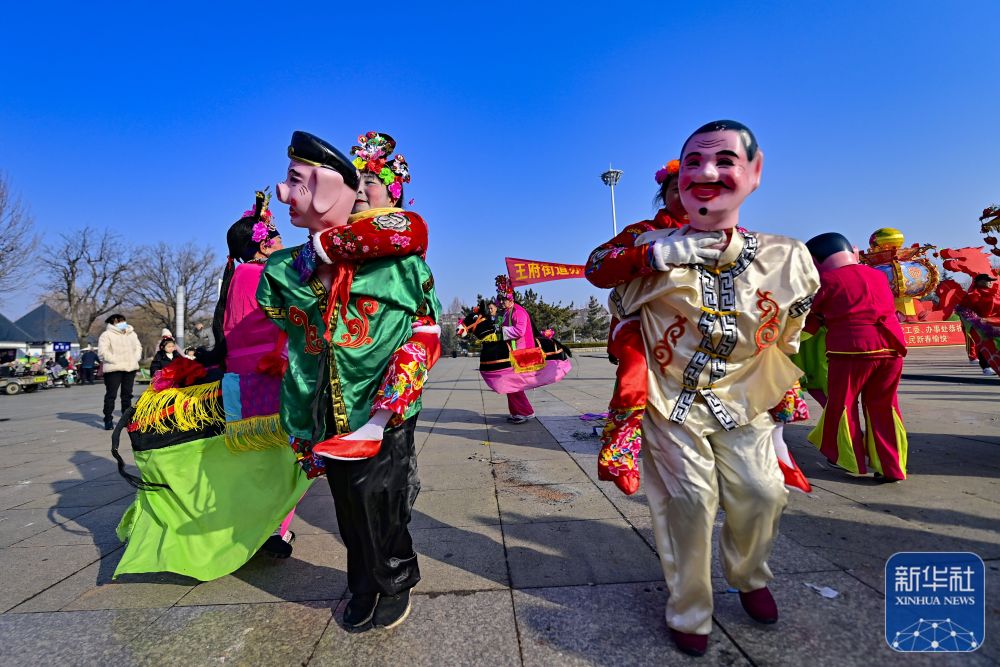 2月10日,民间艺人在江苏省连云港市连云区七一广场表演民俗节目。