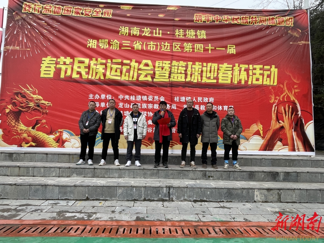 新湖南客户端2月10日讯(通讯员 张德远)2月10日,湘西土家族苗族自治州龙山县桂塘镇举办第四十一届湘鄂渝春节民族运动会暨篮球迎春杯活动。