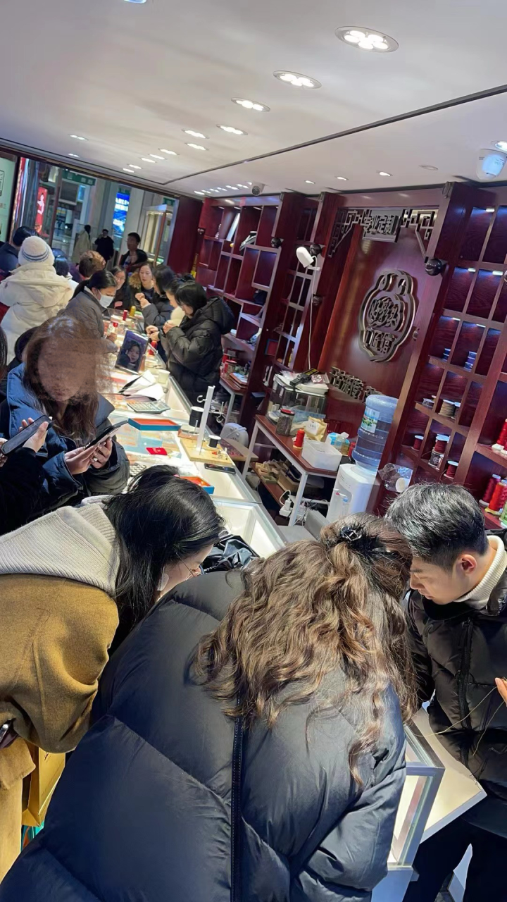 在她们买金的同时,店里不断有客人进来、成交,有人买龙年生肖金饰,有人买金手镯。一旁的老板娘岚岚告诉记者,这几天太忙了,每天从早上9点忙到夜里10点,前一天连中饭和晚饭都没空吃,“特别是那些要给金饰编绳的客人,每天都要排队,有些客人排队都超过两小时。”