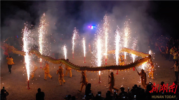 “钢火烧龙”是湖南省第五批非物质文化遗产代表性项目,已有300多年的历史,是湘西苗族为祈祷风调雨顺、五谷丰登的传统祭祀活动之一。随着时代的发展和进步,如今,湘西“钢火烧龙”增加了表演性和娱乐性,深受当地群众和游客朋友喜爱。