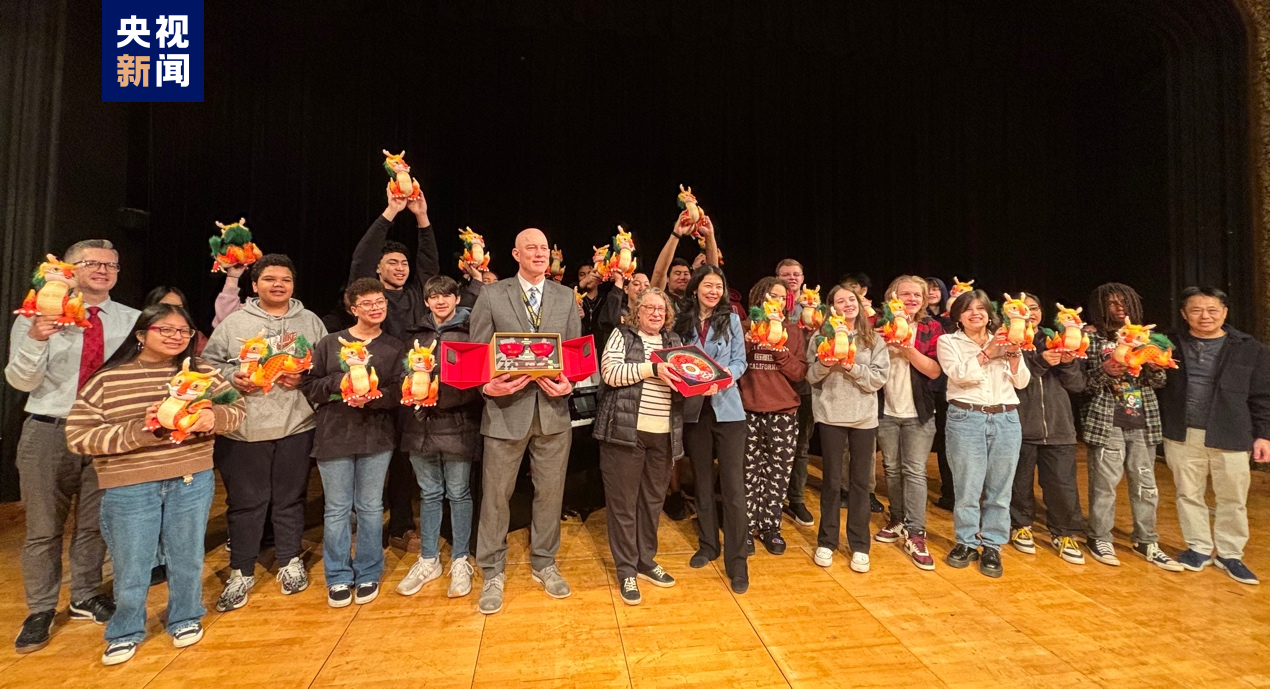 △林肯中学学生非常喜欢总台春晚吉祥物“龙辰辰”