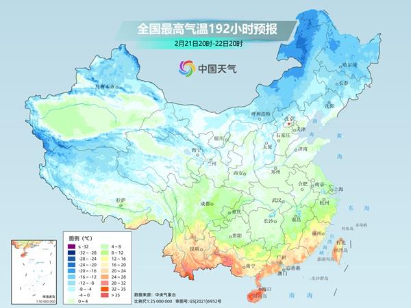这股寒潮将彻底逆转偏暖格局,尤其前期暖热最突出的长江中下游地区,降温也会最为剧烈,局地最高气温累计降幅甚至可超20℃。2月下旬开始,南方气温将转为大幅偏低,最高气温0℃线或将直抵长江沿线!