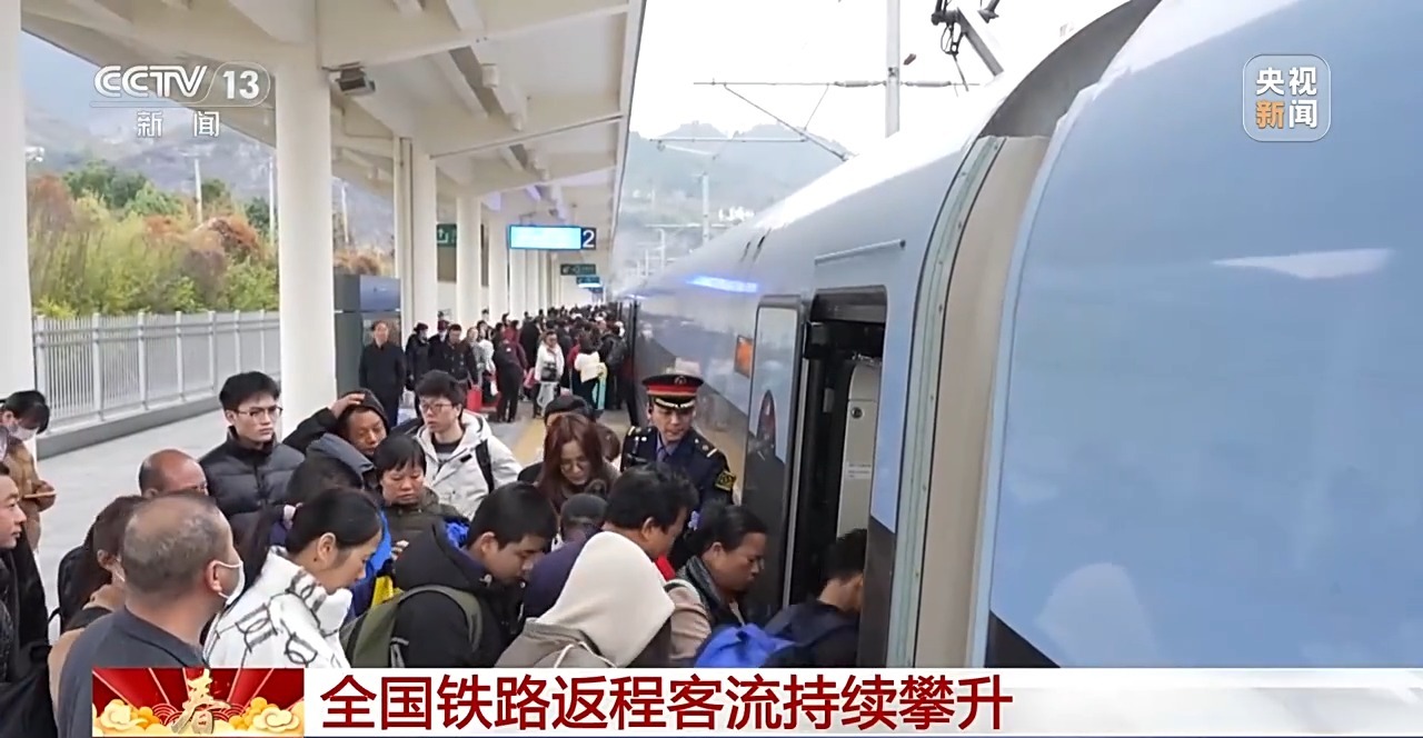 总台央视记者 李伟代:今天大年初七,各地旅游、探亲、务工等客流叠加,全国铁路返程客流持续攀升。