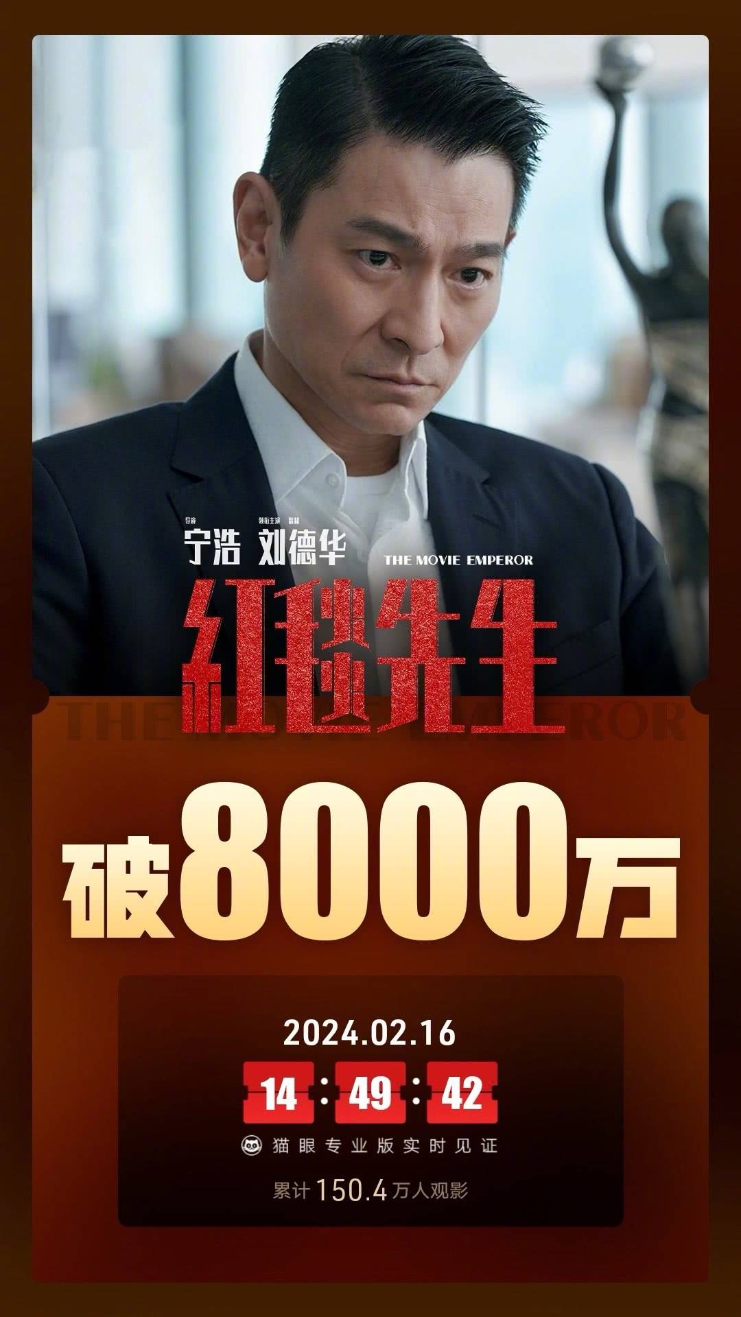 搜狐娱乐讯 据猫眼专业版数据,截至2月17日21时,2024年春节档八天(2月10日—2月17日),档期总票房(含预售)粗报80.23亿,观影总人次1.63亿,总场次393.7万场,刷新中国影史春节档票房、场次、人次纪录!
