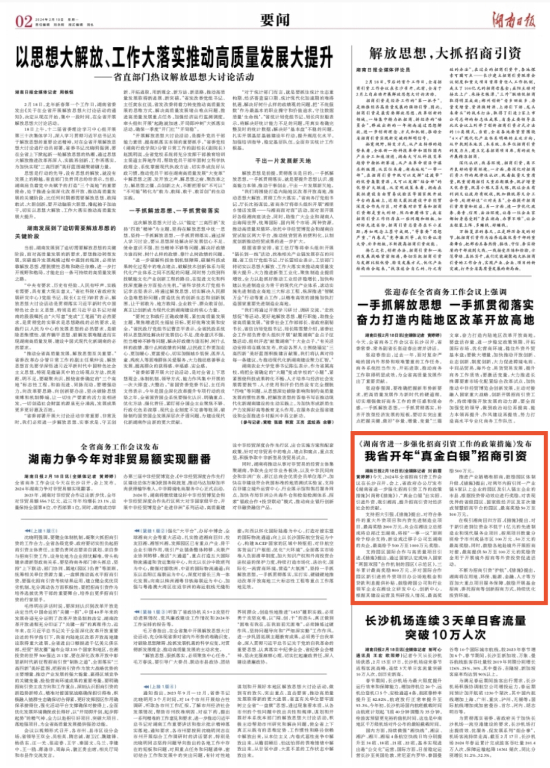 不断为招商引资“护航”。《措施》提出,湖南将在用地、环保、能源、金融、人才等方面加大重点项目服务保障,鼓励开展基金招商、委托招商等创新招商方式,持续优化投资环境。