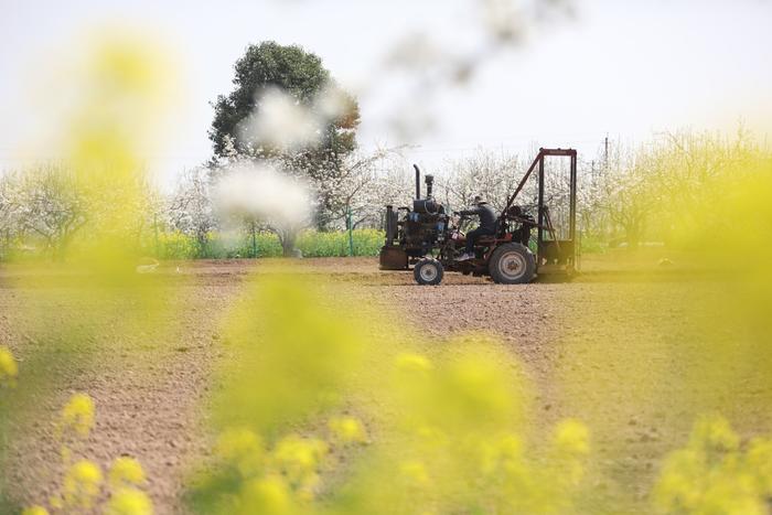 河南省焦作市温县祥云镇王坟村农民驾驶农机在田间劳作。新华社发(徐宏星摄)