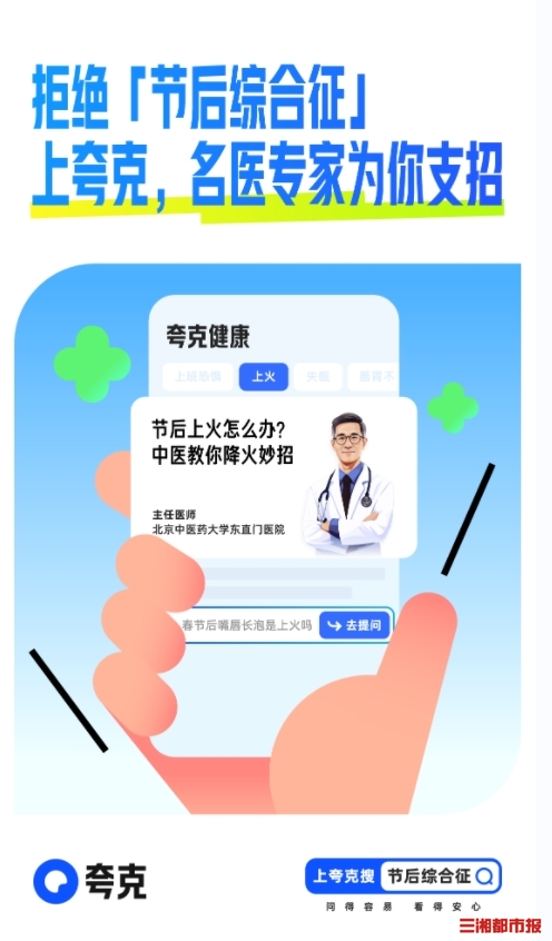 想帮助大家科学高效“满血复活”,夸克App上线“节后综合征”专题,不仅邀请8位三甲医院医生用视频答疑解惑,用户还可体验夸克健康百科、智能筛查以及夸克健康助手等智能产品和大模型工具,更有针对性地自我调节。