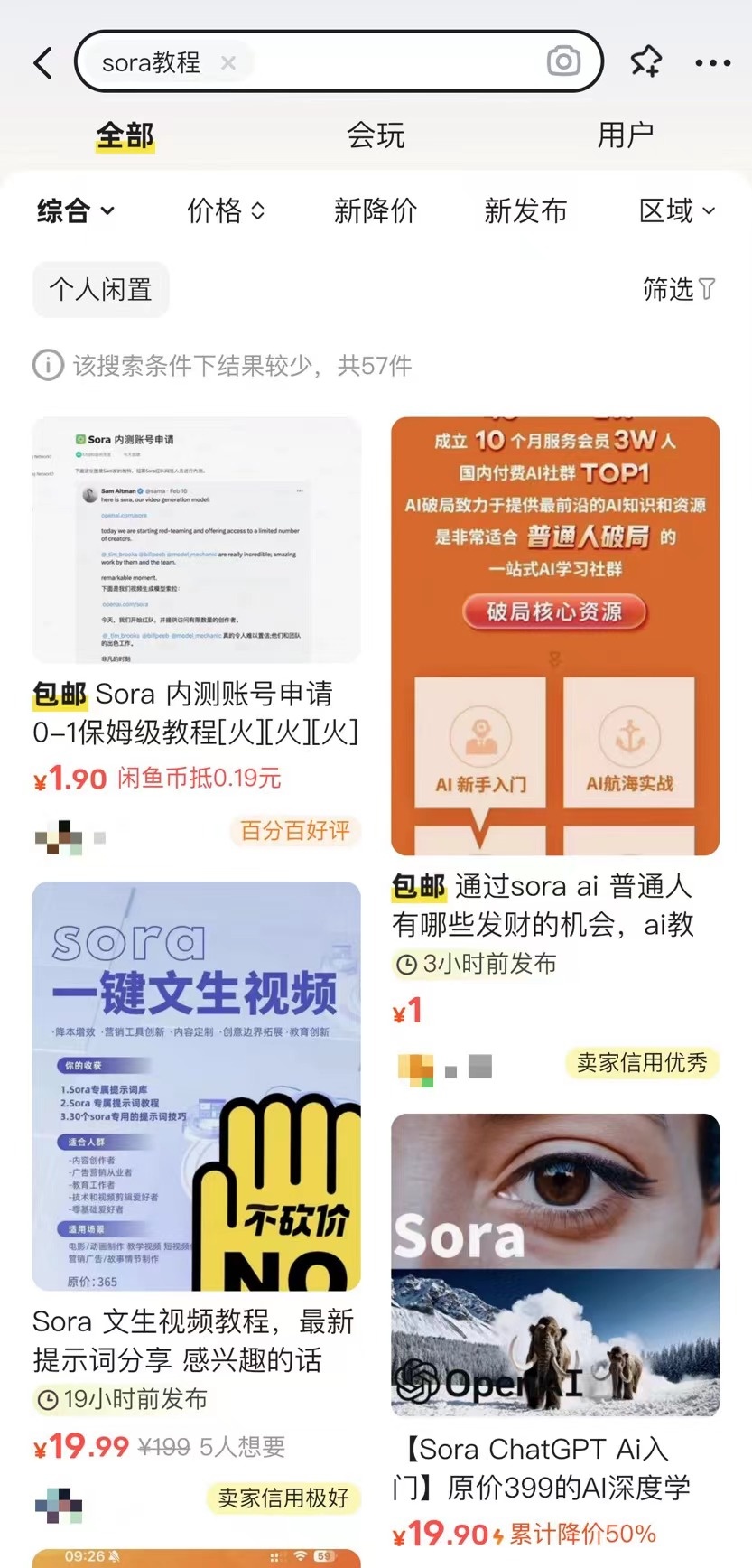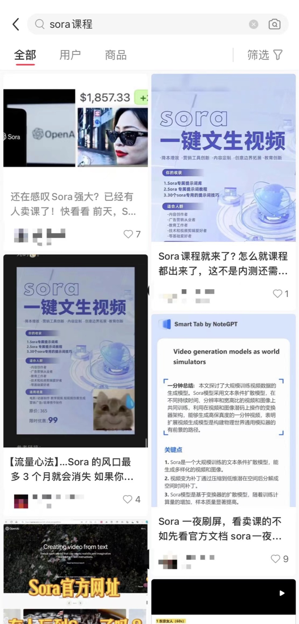“普通人用Sora赚钱的10种办法”“99元给自己的未来一个机会……”自OpenAI近日发布人工智能文生视频大模型Sora之后,在Sora还未发布正式公测前,已经有商家打着Sora的旗号开始赚“第一桶金”。