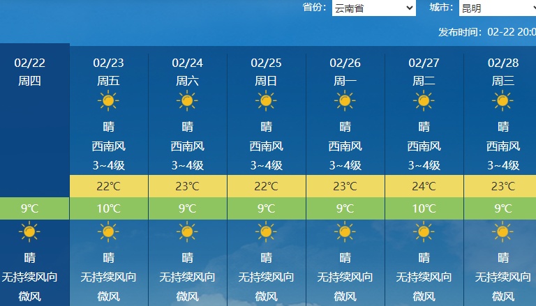 ↑昆明的天气是真的好,气温适宜,多晴朗。