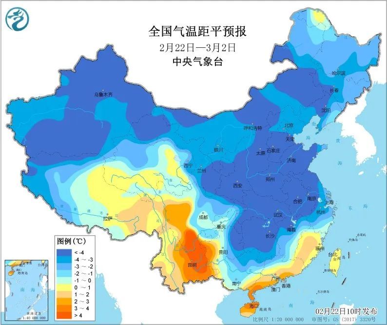 从中央气象台的中期预报来看,未来10天,除华南南部及云南东部等地平均气温较常年同期偏高2~4℃外,我国其余大部地区平均气温较常年同期偏低1~3℃。