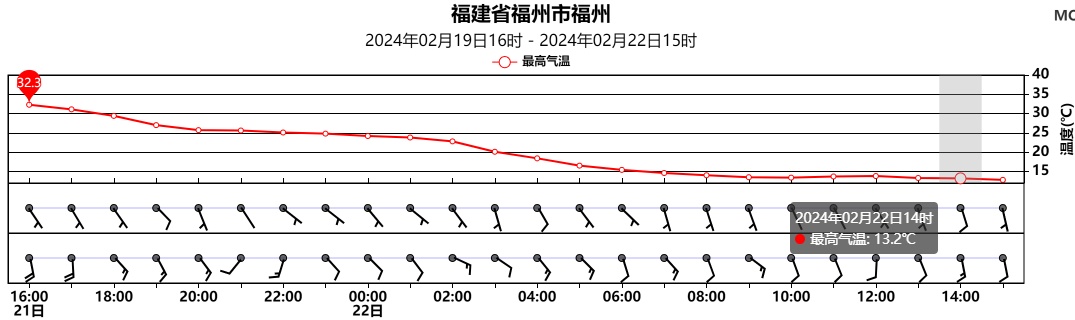 还有福建福州,昨天最高气温一度飙升到32.3℃,不仅刷新当地2月最高气温极值纪录,也刷新了当地30℃+出现的最早时间!然而今天气温一路倒降,到下午14时气温仅有13.2℃,短袖→厚外套,也就一晚上而已。
