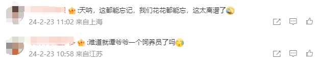 当饲养员谭爷爷喂食时,会喊:花花,过来(四川话:果赖)。花花只有听到“果赖”才会小步慢悠悠地走来,十分可爱。花花与谭爷爷之间的暖心互动成为万千网友心中最治愈的画面。