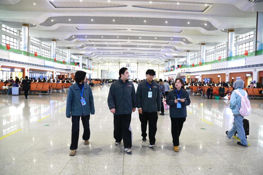 “师父,你昨晚开天窗,今天怎么还来了?”实习生刘继圆看到师父陈佳伟惊讶地问道。陈佳伟倒是毫不在意,笑着回答:“没事,我休息好了,例行工作不能耽误啊。”接着,他带着两位徒弟在候车室边巡视边向她们讲解站内空调、消防、电梯和安检仪等设备巡检流程和注意事项。