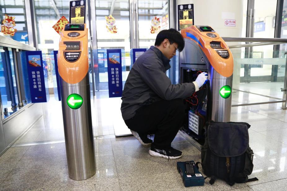 “佳伟,快来,大丰站进站闸机全部无法使用,重启也没用。”13时50分,接到大丰站驻站人员电话后,陈佳伟便带着徒弟刘继圆迅速赶往大丰站。14时10分,他们到达大丰站候车室后,发现客运员正在手动检票,进站闸机全部无法显示,春运期间旅客较多,迅速恢复设备使用才是当务之急。