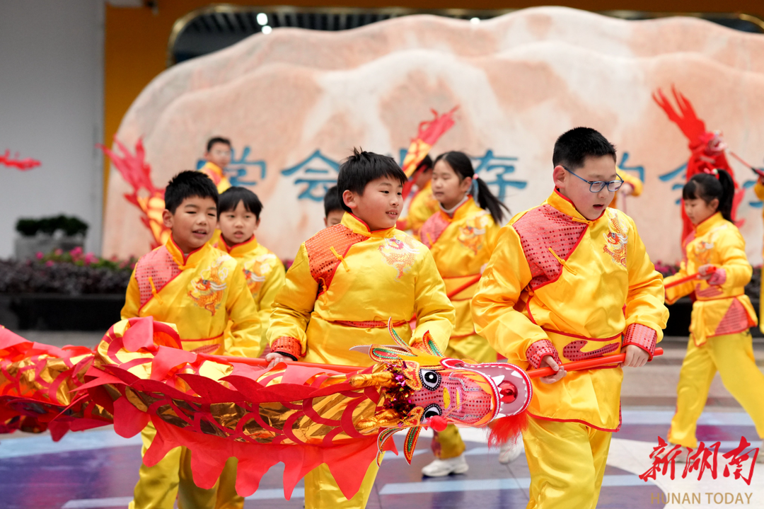 “快来制作糖人,我做了一个龙,你做一个蝴蝶吧”……一大早,麓山国际第二实验小学传来阵阵欢笑声。当开学典礼吹响“集结号”,一场场寓教于乐的非遗展进入校园,给学生们带来新学期的第一堂课。