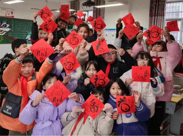 “老师,这是我画的卡通龙!”“老师,我的福字写得好吧?”“老师,这是我的‘春龙抬首’,你看怎么样?”……宁乡市流沙河镇合兴小学开展“龙年启新程 着笔绘新篇”主题迎新活动,师生一同在龙年“新篇”用毛笔绘出新年的期待,写出奋斗的力量。