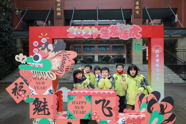 浏阳市进修学校附属小学设计了“微笑”龙、“洁净”龙、“奔跑”龙等卡通人物,“龙宝宝”们在校门口迎接同学们的到来。孩子们通过“勇跃龙门 星程朤朤”寻星记地图,体验龙的传人、龙腾四海、龙舞九州、祥龙送福等游戏关卡,参加新学期第一天拜尊师、参观龙文化展、体验舞龙、写下龙年心愿等系列活动,激励用“勇跃龙门”的干劲、闯劲,一路微笑、一路坚持、一路奔跑,努力成为最棒的自己。